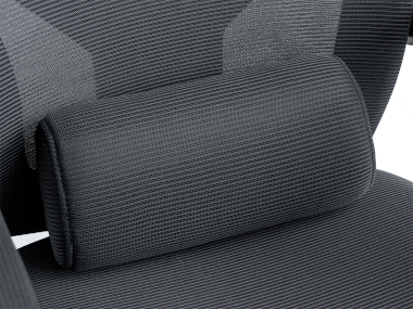 そのほか、腰部を支えるランバーサポートクッションを標準装備しており、デスクワークで負担がかかりやすい腰回りをやさしく支えてくれるので、正しい姿勢を保ちやすい。なお、使わないときは背もたれの裏側に収納しておける。
