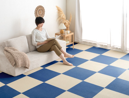 1枚あたり50×50cmの大判サイズのため設置に必要な枚数が少なく、施工時間の短縮が可能になる。さらに、カッターやハサミで簡単にカットできるので、部屋の角や柱、家具の形状に合わせて無駄なく敷き詰められる。