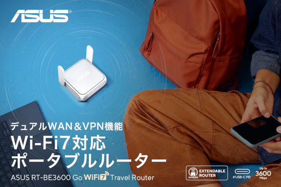 ASUS JAPANは1月23日、Wi-Fi 7(IEEE 802.11be)に対応したポータブルルーター「ASUS RT-BE3600 Go」を各家電量販店やECサイトで発売した。市場想定価格は1万9980円。