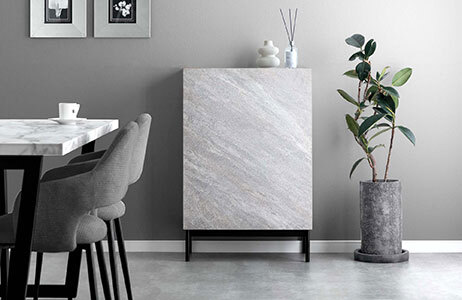 まるでキャビネットのような見た目のゴミ箱として生まれた「魅せるゴミ箱」は、取っ手や装飾をなくしたシンプルなデザインとシックな石目調でリビングに設置しても違和感なく、モダンな空間にしてくれるデザインになっている。生活感を感じさせない、フラップ式のダストボックスで、ゴミ袋が外から見えない設計で、部屋をすっきりおしゃれに演出する。また、奥行き30cmのスリムな設計で、リビングやキッチンなどの限られたスペースでも圧迫感なく、設置することが可能。前面は片手で簡単に開閉できるフラップ扉になっており、フタが自然に閉まらない構造なので、ゴミ捨てや袋の交換もスムーズに行える。