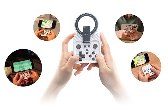 付属の磁気リングはスタンドとしても活用可能。コントローラーを分離したセパレートモードでスマホゲームを遊べる。
