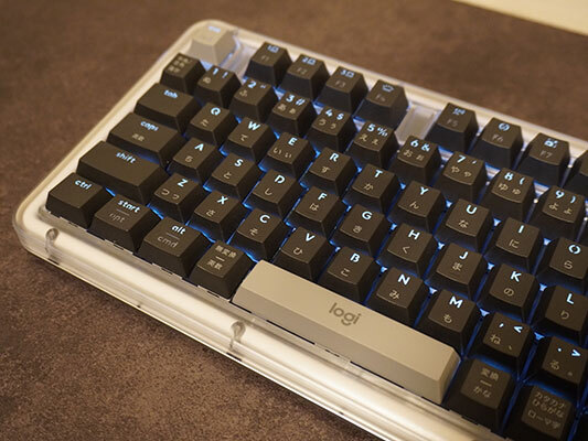 ただ、筆者が特に推したいのは、デザインだ。最も分かりやすいのが、スケルトンのトップケース。特別感はあるがゲーミングのように奇抜ではなく、オフィスでもしっくりくるちょうどよさが魅力的だ。キーカラーはブラックとホワイトの2色があるが、ESC・スペース・エンター・アクションキーなどはグレーに色分けされており、スタイリッシュさもある。