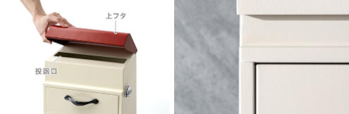 さらに、投函口を上フタの内側に配置した二重構造を採用することで、すき間から雨が入り込みにくく荷物が濡れるのを防げる。また、劣化しにくく防塵性にも優れた粉体塗装仕上げを採用し、サビに強く屋外でも長くきれいな状態を保てる。