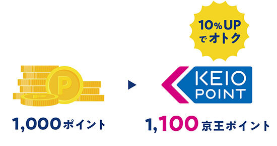 もっとお得に使いたいなら、「京王トレインポイント→京王ポイント」の交換が最強の選択肢です。なぜなら、交換レートが1.1倍になっており、1000ポイントであれば1100ポイントに替えることができるからです。