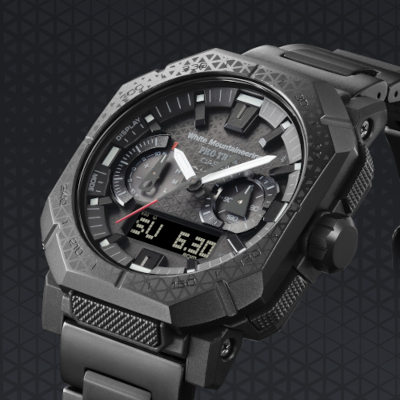 カシオ計算機は2月20日に、本格アウトドアウオッチ「PRO TREK(プロトレック)」の新製品として、「服を着るフィールドはすべてアウトドア」をコンセプトに掲げる、日本発のファッションブランド「White Mountaineering(ホワイトマウンテニアリング)とのコラボレーションモデル第2弾となる「PRW-B1000WM」を発売する。価格は14万800円。