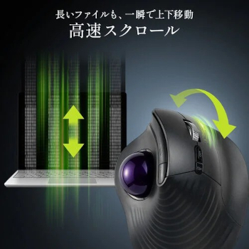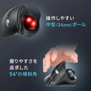 400-MAWBTB230は、縦に長いWebページやドキュメントを一気に閲覧できる「高速スクロール機能」を搭載。ホイールを左右に倒すだけで横移動ができる「チルトホイール」も採用している。さらに、人間工学に基づく54度の傾斜角を採用。手首をひねらず自然に握れるため、長時間作業でも疲れにくいエルゴノミクス形状を実現している。腱鞘炎対策や、普段のマウス操作で肩や腕に負担を感じるユーザーにとって適した製品だ。