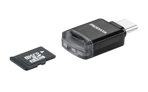 新製品はボタン一つでスマホの写真や動画をバックアップできる便利なカードリーダー。サイズは500円玉と同じくらいで、持ち運びもしやすい。接続方式はUSB Type-C。