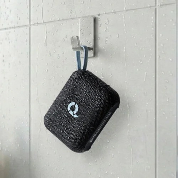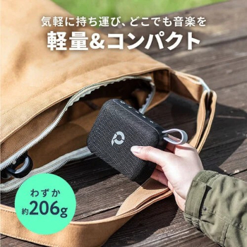 ストラップ付きでフックやテント内に吊り下げて使うこともでき、突然の雨でも故障の心配をせずに音楽が楽しめる。