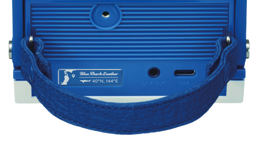 SHARK BURGERは、1982年に誕生したレコードを挟んで聞く「SOUND BURGER」をベースに、気仙沼産サメ革を背面ハンドルに採用。上蓋にサメの歯を思わせるギザギザ、レコード針部にサメ型パーツを配するなど、随所に“シャーク”な意匠が盛り込まれている。