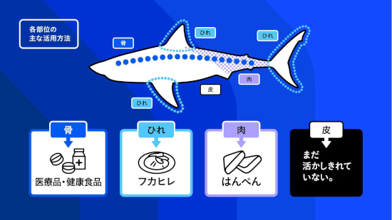 さらに、金属プレートに「捕獲座標」と「品種名」を刻むことで、気仙沼のサメ漁がトレーサブルで正しい漁業であることを見える化。「いつ・どこで・どのサメが獲られたか」を管理する地元の仕組みを、製品の裏面にまで落とし込んだ。
