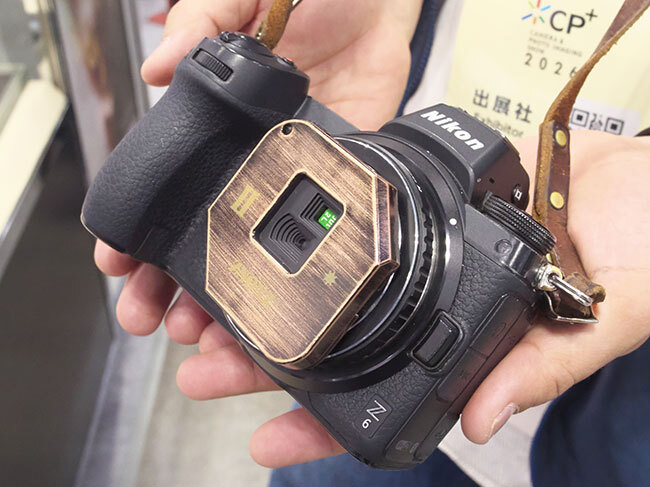写真の写りを最も左右するのはレンズだ。しかし、レンズなしで写真や動画が撮れるユニットが人気を呼んでいた。ズノンが出品した「ZNONZ」だ。地味ながらも人の絶えない人気ブースになっていた。ガラスレンズを使わずに撮影するものの代表格として「ピンホールレンズ」がある。つまり、穴が開いただけの板だ。ZNONZはこれに改良を加えたもの。単なる穴あきの板ではなく、さまざまな形状で穴の空いたプレートに光を透過させることで、独特の表現を実現。滲みによる空気感も伝わるレトロ調の「エモい」写真が手軽に撮れる。焦点距離は20mm相当の広角。マウントはライカMマウントだが、アダプターを介してほぼすべてのミラーレスカメラに使用できる。