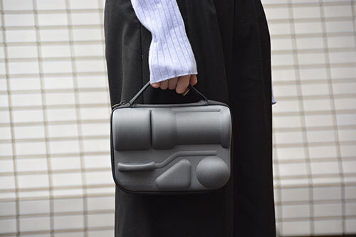 手挽きスタイルの収納が可能な専用セミハードケースが付属