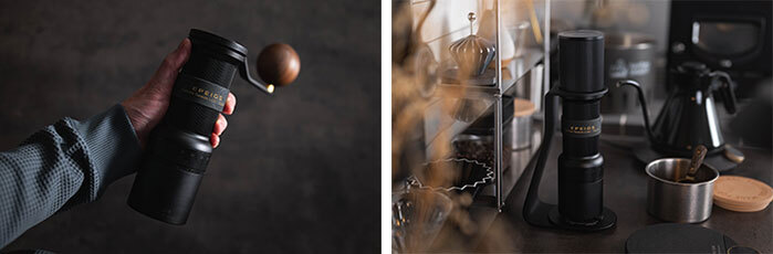 「Essence Duo」は、同社が第15代ワールドバリスタチャンピオンである井崎英典氏による監修のもと開発した、手挽きミル「Essence Go(エッセンスゴー)」の素性のよさはそのままに、モーターユニットを新たに加えることによって、手挽きのハンディーミルとしても電動グラインダーとしても使えるようになった2WAYモデル。