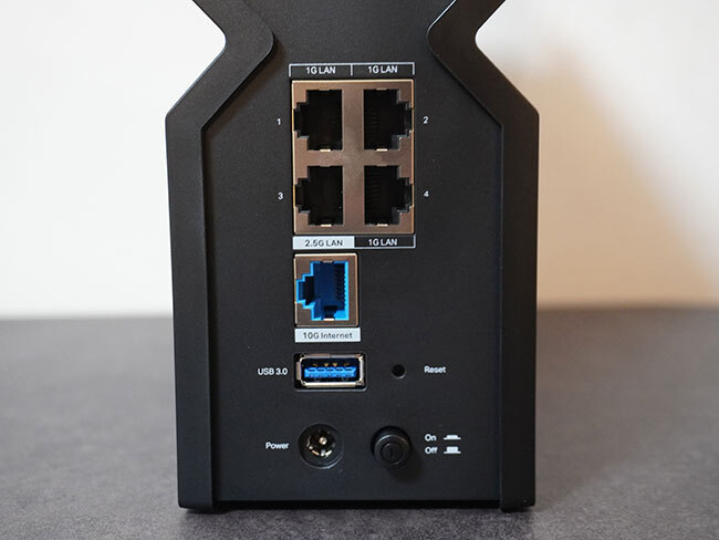 構成はトライバンド+10Gbps/WAN+2.5Gbpsポートで、理論上の最大通信速度は6GHzで11528Mbps、5GHzで2882Mbps、2.4GHzで688Mbps(公称値)。6本のアンテナを内蔵しており、広範囲に安定した信号を届けることができるハイスペックマシンだ。