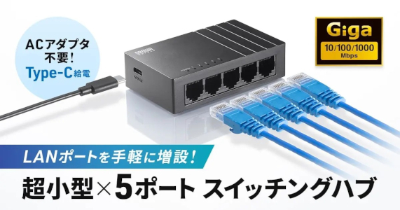サンワサプライは、1000BASE-T対応の超小型5ポートスイッチングハブ「LAN-GIGAC503BK」を発売している。コンパクト設計でUSB Type-C給電に対応し、電源確保が難しい環境でも柔軟に利用できる。価格は5720円。