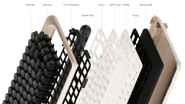 キーボードは、レトロなビジュアルながら、ガスケットマウント構造やホットスワップ対応スイッチを採用。打鍵感なども重視しており、3ピン/5ピンスイッチへの交換に対応するなど、カスタマイズ性も備えた。キー数は84(75%)。サイズは325×160.5×44.4mmで、重さは972g。