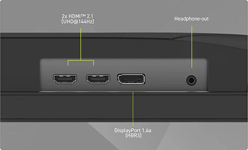 インターフェースは、HDMI 2.1(HDCP 2.3)×2、DisplayPort 1.4(HDCP 2.3)×1、イヤホンジャックを備える。
