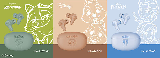 JVCケンウッドはこのほど、Victorブランドからディズニーストアとの共同企画の第三弾として、完全ワイヤレスイヤホン「HA-A20T」に特別デザインを施した「ニック」「チップ&デール」「アナとエルサ」モデルを発表。3月20日にディズニーフラッグシップ東京、全国のディズニーストア、ディズニー公式オンラインストア ディズニーストア.jpで発売する。希望小売価格は7200円。