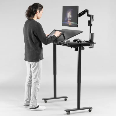 標準でロック付きキャスターを搭載しており、部屋の掃除や模様替えをストレスなく行うことができる。同ブランドのケーブルオーガナイザーや付属クリップと併用すると、配線をスッキリまとめながら昇降時の断線リスクを低減できる。