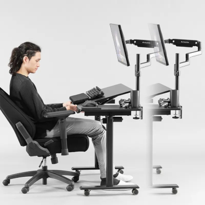 寝ながらゲームも創作も1台で完結! 電動昇降×チルト×水平天板で姿勢自由自在の“全部入り”デスク