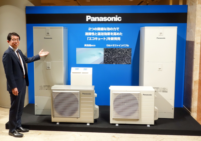 パナソニック 空質空調社は3月25日、家庭用ヒートポンプ給湯機「エコキュート」全7シリーズ・53機種を3年ぶりにフルリニューアルした。プレミアムのJXとJPシリーズ、ミドルのJシリーズ、スタンダードのEシリーズに洗浄力を高めるウルトラファインバブルを搭載。プレミアムモデルのJXシリーズには、肌の保湿や保温・温熱、リラクゼーション効果を促すマイクロバブルの「美泡湯eco」も搭載した。JXシリーズは9月、ほかのシリーズは6月26日に発売する。価格は106万400円~140万9100円(Eシリーズはオープン価格)。