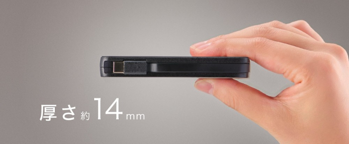 iPhoneにちょうど収まるサイズ感で厚さは14mm