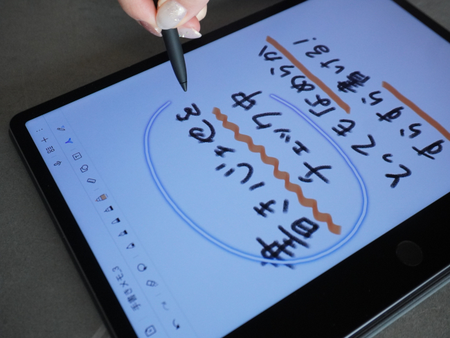 高速でスクロールしても、ちらつきや残像感はなく、紙をめくるように画面を縦横無尽に動かしながらメモや図を書き込むことが可能だ。