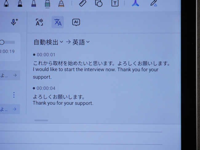 先ほども紹介したように、現時点で利用可能なのは、音声の高精度の文字起こしやリアルタイム翻訳、要点整理、手書きメモのテキスト変換、数式自動算出、文章の推敲などだ。