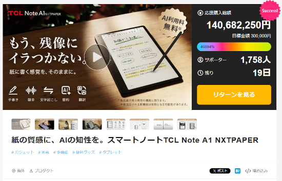 TCL Note A1 NXTPAPERは、まだ一般発売はされておらず、4月10日までクラウドファンディングサイト「Makuake」で先行販売している。3月23日時点では、下記のプランが購入可能だ。