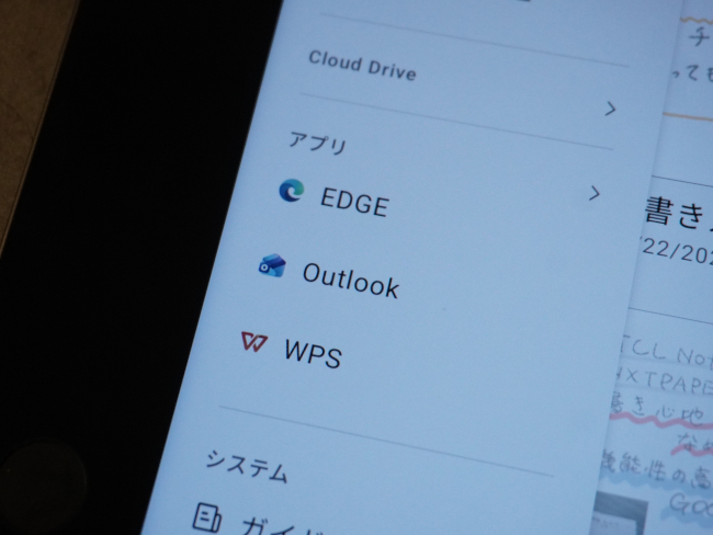 アプリを起動するときも、ホーム画面の左上にあるメニューから選択するなど、多少手間がかかる。メモ機能がメインのデバイスであり、アプリはその補助的役割ということを考えれば、目をつぶれる要素ではあるのだが、もっとスムーズに行き来できれば使い方がさらに広がるように感じた。