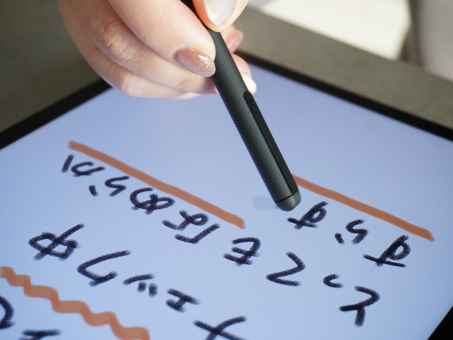 ペンの種類や線の太さ、文字色などの幅も広く、効率よく思い描いた文字を選択できるのも魅力的。T-Pen Proの上部は消しゴムとして機能するのだが、この感触がまた良い。消しゴムらしい摩擦感を再現しており、体験としてとても心地よいものになっている。