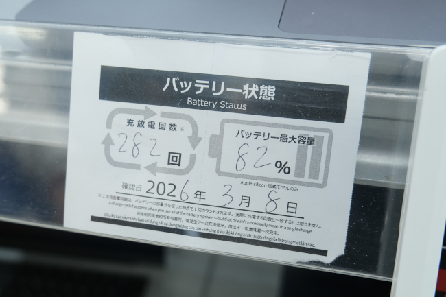 鷹野 はい、分かります。例えばMacのPCなら、システムから詳細な使用データが閲覧可能です。当店では、どれだけバッテリーが消耗しているかは、それぞれ掲示しています。