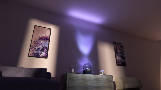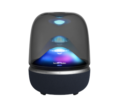 ドーム状のライティング部分には、新モデルだけの「ネビュラ」パターンを含め、七つのライティングテーマを楽しめる。「Harman Kardon ONE」アプリを使えば、明るさなどの各種設定ができ、テーマに合わせたアンビエントサウンドも選択できる。