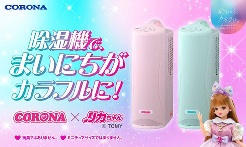 コロナは4月10日16時まで、タカラトミーの「リカちゃん」とコラボレーションした「CORONA×リカちゃん カラフルポップな衣類乾燥除湿機」の予約受付を行っている。カラーはマシュマロピンクとミントグリーンの2色で、価格は3万8000円。各色限定500台だ。