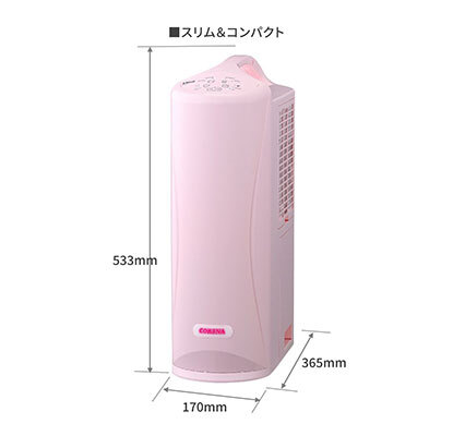 本体デザインは、カラーリングだけでなく、正面にリカちゃんロゴに合わせたポップな「CORONA」ロゴ、操作パネルの左上に「Licca」ロゴをあしらっている。リカちゃんハウスの中にあるおもちゃの家電が自分のお部屋に登場したような、わくわくした気分をイメージした。