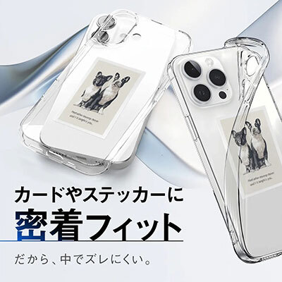 背面には、FIRME独自の密着フィット構造を採用。余分な空気が入りにくく、ケース内部に隙間が生まれにくいため、カードやステッカーを挟んでもズレにくい。また、マイクロドット加工によって透明ケース特有の密着痕が残りにくい点も、うれしいポイントだ。