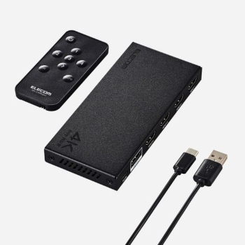 エレコムは、最大4台のHDMI対応機器を接続できる、HDMI切替器「DH-SW4KB41BK」を4月中旬に発売する。店頭実勢価格は5580円。