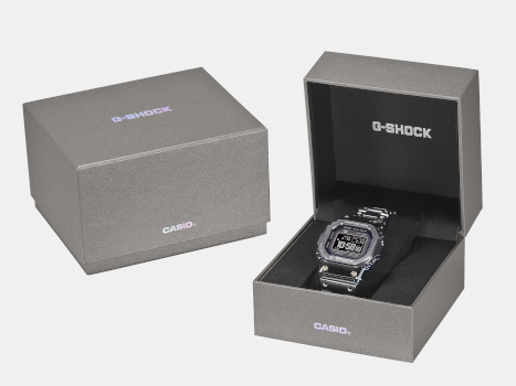 内部には、弾性変形によって衝撃を吸収する樹脂製インナープロテクターを実装。ラグの3本足構造やスクリューバックの採用により、フルメタルでありながらG-SHOCKの厳格な耐衝撃基準をクリアした。デジタル表示部には高精細なMIP液晶を搭載し、従来の液晶を超える視認性と、専用アプリとの連携により、メイン表示をクラシカルな7セグメントフォントへ変更することもできる。