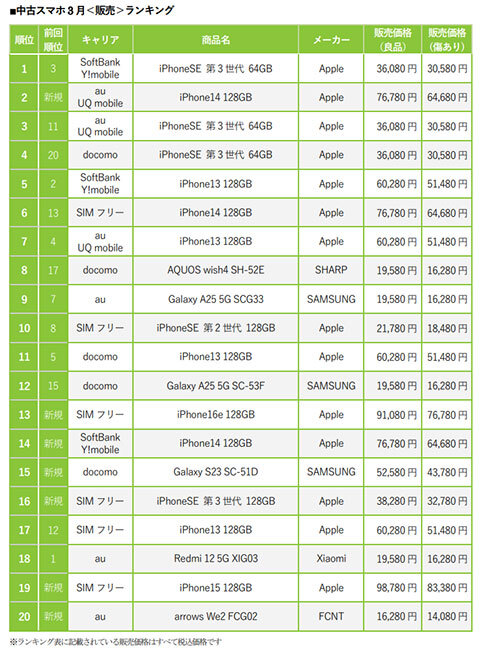 ランキングから見る ゲオで売れている人気の中古スマホ