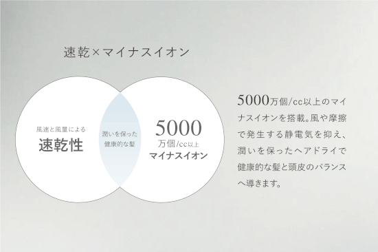 優れた速乾性とマイナスイオンで健康的な髪に