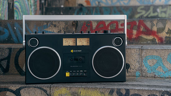 新製品は、1980年代を象徴するブームボックスをネオレトロデザインで現代的に再解釈した高性能Bluetoothスピーカー。ブラッシュドアルミニウムなどの高品質素材を採用し、耐久性とデザイン性を兼ね備えている。また、左右独立のウーファーとツイーターを搭載し、広がりのあるフルレンジのステレオサウンドを実現した。