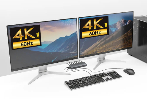 解像度は4K(3840×2160)と4K(4096×2160)の60Hz出力に対応。2台の4Kディスプレーを同時に出力でき、文字や映像もくっきり表示されるため、オフィス用途だけでなく、デザイン作業や映像編集などでも活用できる。