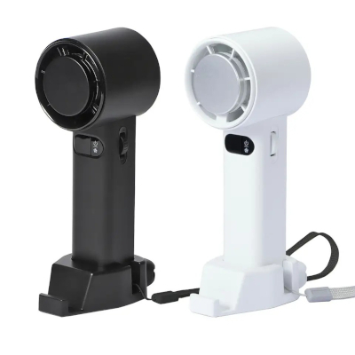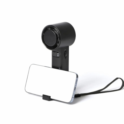 最大風速は約6.0m/s。風量は100段階の調整が可能だ。冷却機能のオン/オフも切り替えられるため、使用シーンに応じて使い分けられる。スタンド付きで卓上の使用が可能、スマホスタンドの機能も備えるなど、外出先だけでなくデスク周りでも活用しやすい。