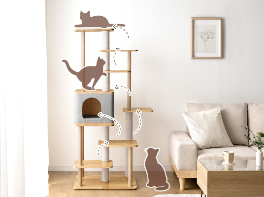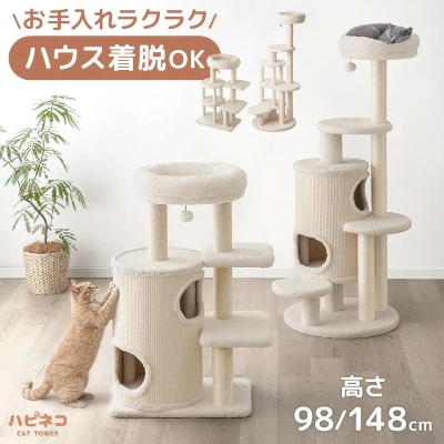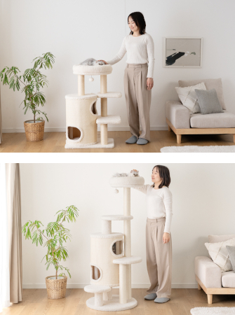 ラインアップは、足腰の弱い子猫やシニア猫でも上り下りしやすい高さ98cmモデルと、活発な猫が思い切り遊べる高さ148cmモデルを用意している。