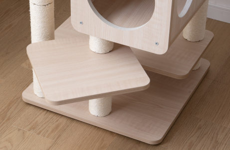最下段には爪とぎポールを備えるほか、猫が体をこすりつけて毛繕いが可能な「すりすりポール」も設けている。