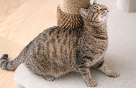 最下段の爪とぎポールは猫が体をこすりつけて毛繕いできる
