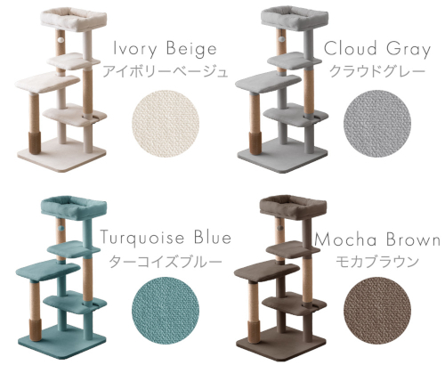 タンスのゲンは4月17日に、「洗える!カバーリングキャットタワー」「もこふわワントーンキャットタワー」「登る、休む、降りる。がスムーズな木目調デザインキャットタワー」「ぬくもり感じる天然木キャットタワー」の計4種を、公式オンラインショップ、楽天市場店、Yahoo!ショッピング店にて発売した。