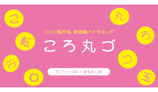 「ころ丸ゴ」は、柔らかな「丸ゴシック体」の漢字に、遊び心あふれる「まるもじ体」の仮名を混植したハイブリッド書体。丸ゴシックの持つ可読性を保ちつつ、楽しさやかわいらしさをプラスしたいシーンに適している。