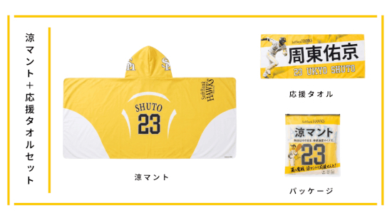 PropTech Japanは4月20日に、福岡ソフトバンクホークス承認ライセンス商品「涼マント」の先行販売を、同社が運営する「RE Shopping」にて開始した。ラインアップは、イエロー、ピンク、ブラックのカラー3色に加えて、柳田選手バージョンと周東選手バージョンそれぞれ3色の、計9種類を用意している。いずれも価格は1万円。