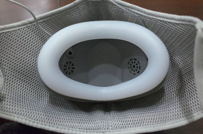 マスクの中に本体の消音ユニットがあるため、
